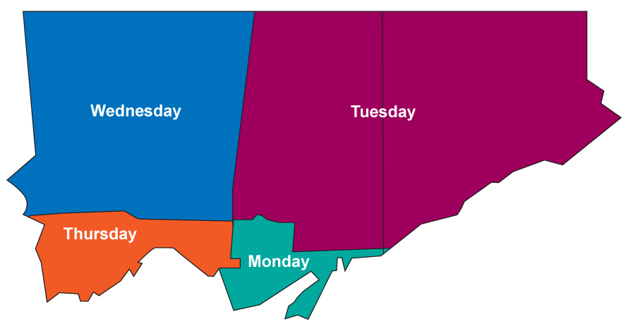 Green bin organics are picked up every week while blue bin recycling and garbage are. Says bill may properties and facilities manager for the army s recycling operations in eastern canada. If you live in house with daytime collection your waste is collected on a specific day of the week based on where you live in the city. There is no charge for drop off or pick up of household hazardous waste.
